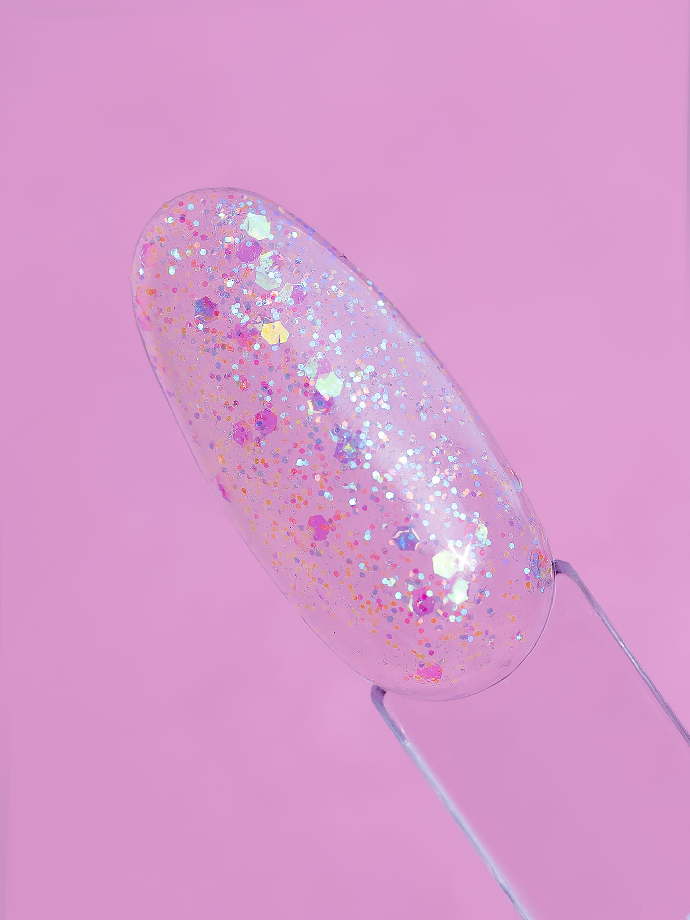 Este verniz é um brilho alegre e transparente com uma pitada de flocos de glitter colorido, lembrando pedaços fofos de algodão doce. É a escolha ideal para adicionar um toque de fantasia a qualquer estilo.