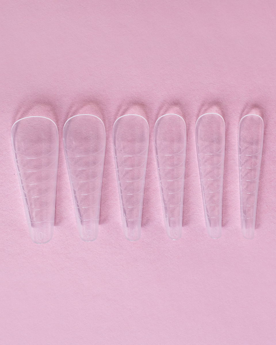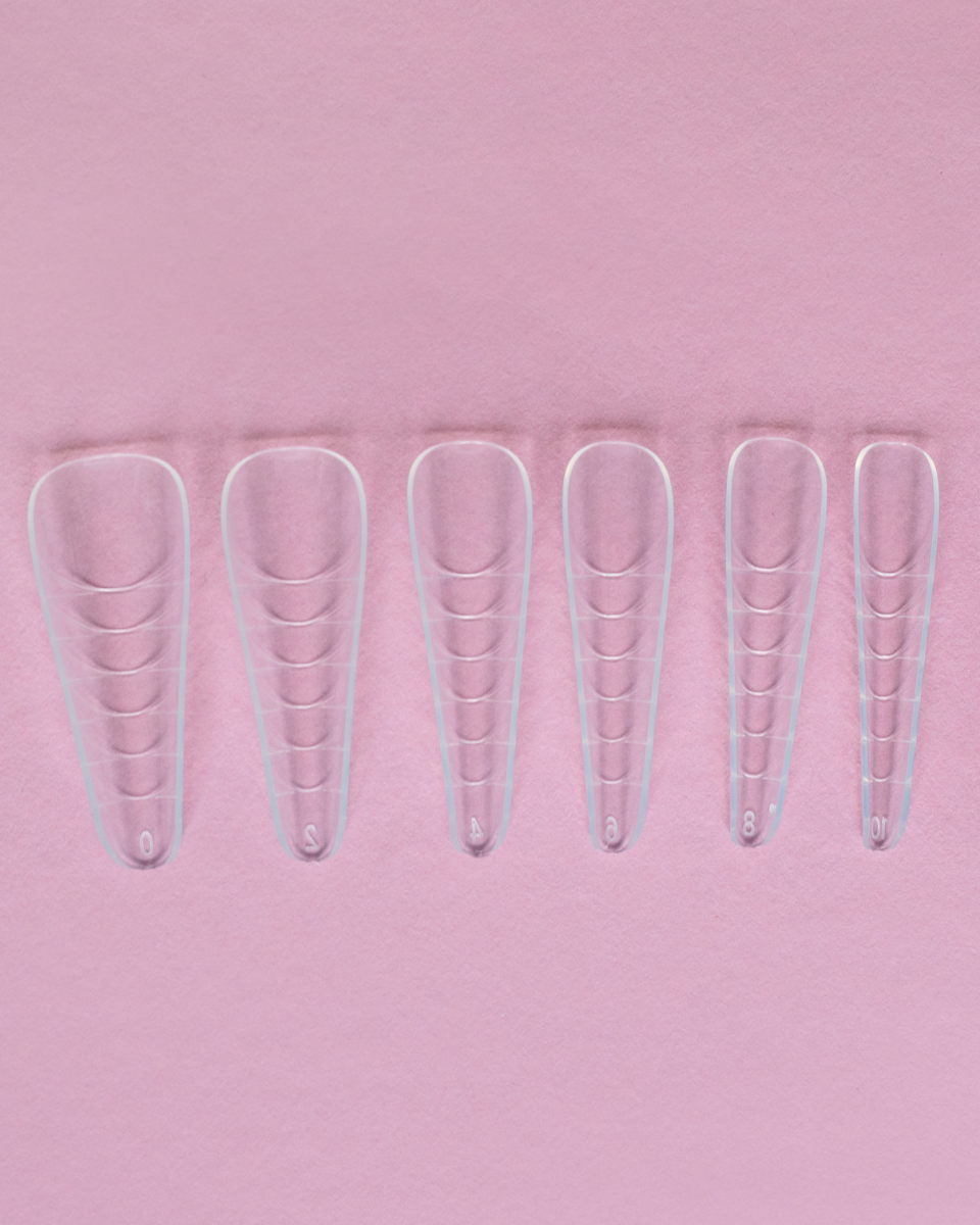 Bordas perfeitamente retas que se estreitam para cima, com um túnel forte e expressivo, adequadas tanto para alongamentos longos como para preenchimentos curtos.