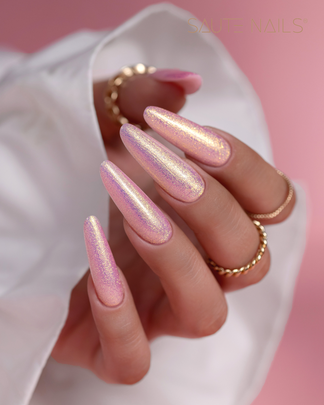 Inspirado pelo brilho da superfície da água refletindo os raios de sol, o esmalte transita suavemente do delicado e romântico rosa ao dourado quente, criando um efeito que lembra os reflexos de luz dançando na água.