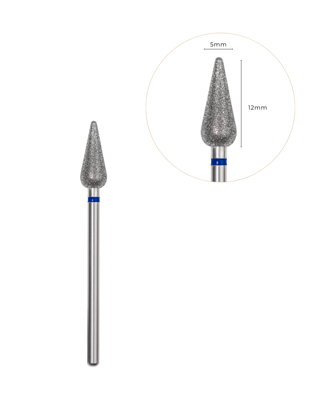 A cabeça da broca tem um diâmetro de 5 mm e um comprimento de 12 mm, proporcionando precisão durante o uso, permitindo uma preparação exata das cutículas sem danificar.
