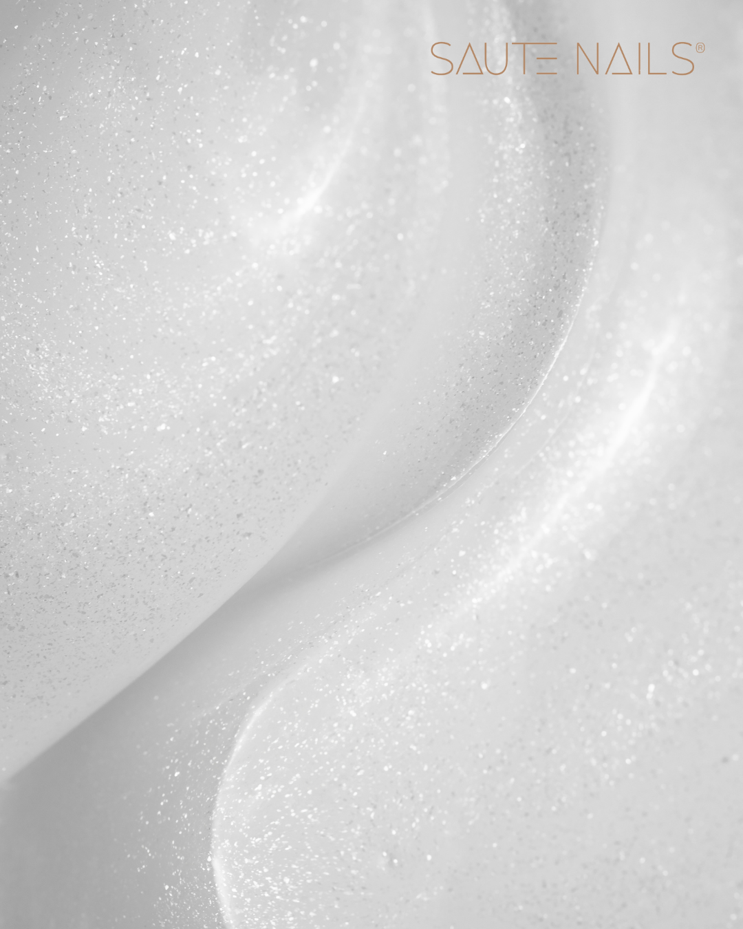 Glitter Milky White é um tom leitoso que esconde partículas prateadas mágicas.