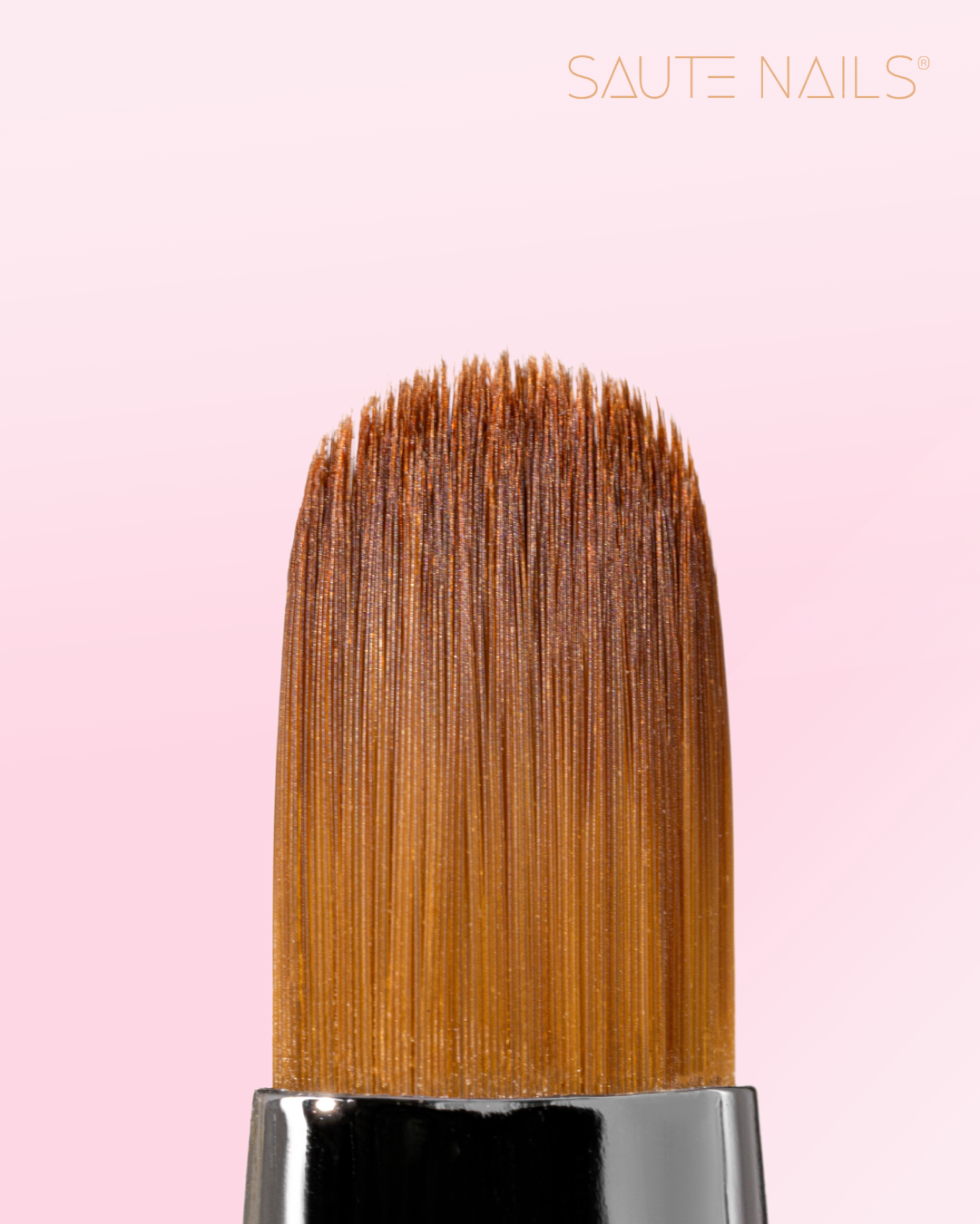 As cerdas sintéticas de largura média e formato levemente oval permitem modelar e formar o acrílico em gel com precisão, garantindo uma superfície perfeitamente lisa.
