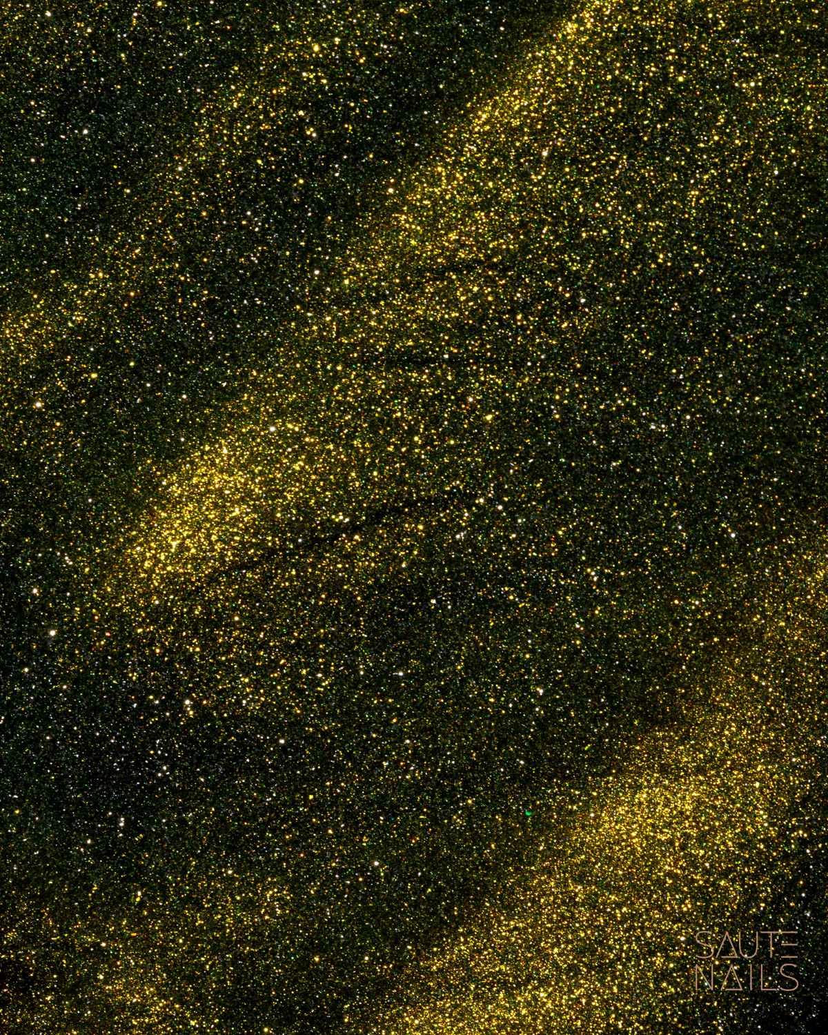 O pigmento dourado é entremeado com pequenas partículas cintilantes que refletem cada raio de luz, criando um efeito cheio de opulência e elegância.