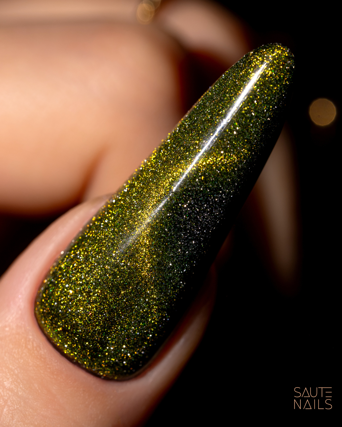 O Cat Eye Effect E04 da Saute Nails é uma interpretação extravagante e profunda do céu cósmico, encapsulada em um elegante tom dourado.