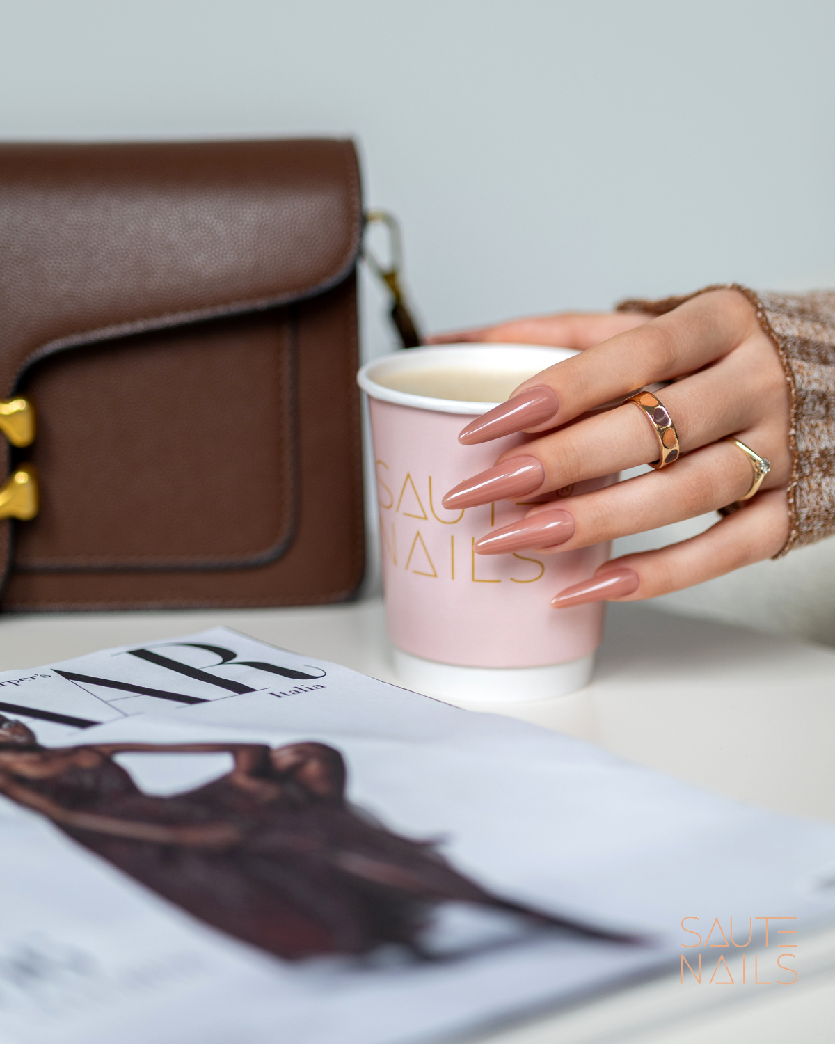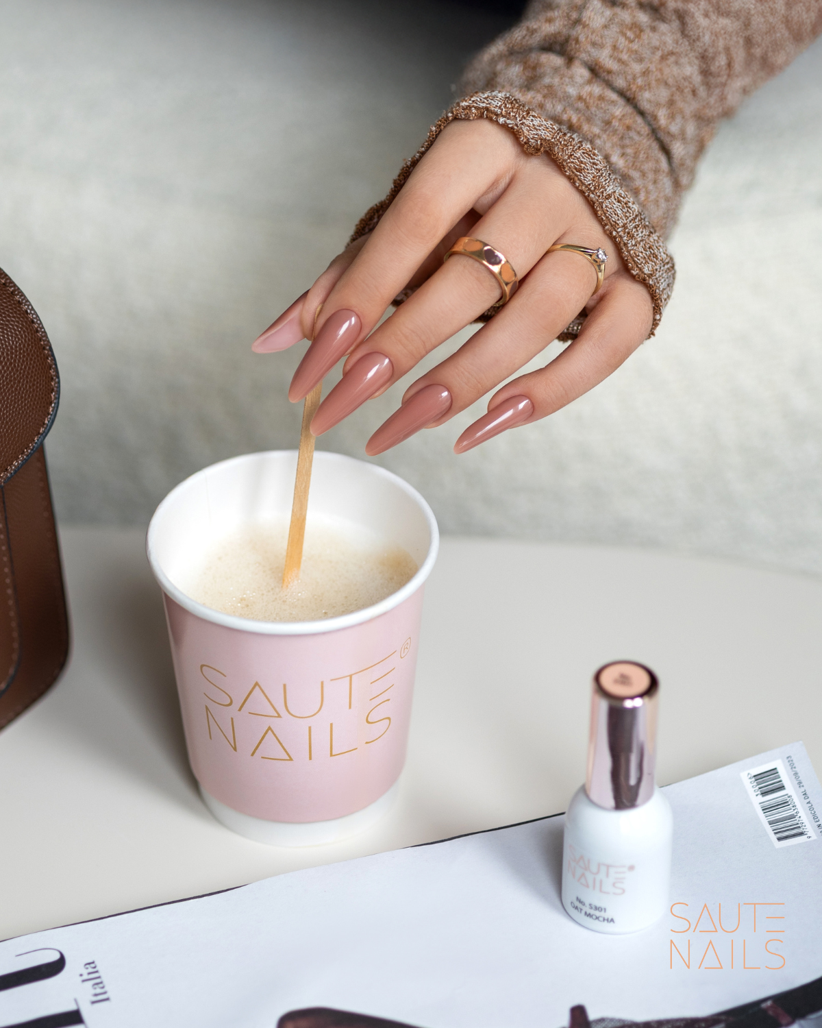 O verniz gel S301 Oat Mocha é um bege subtil e semitransparente que realça a beleza natural das unhas.